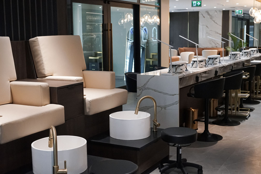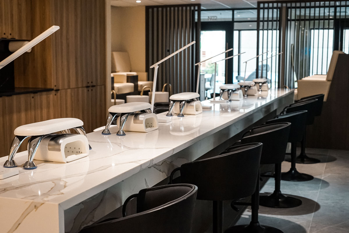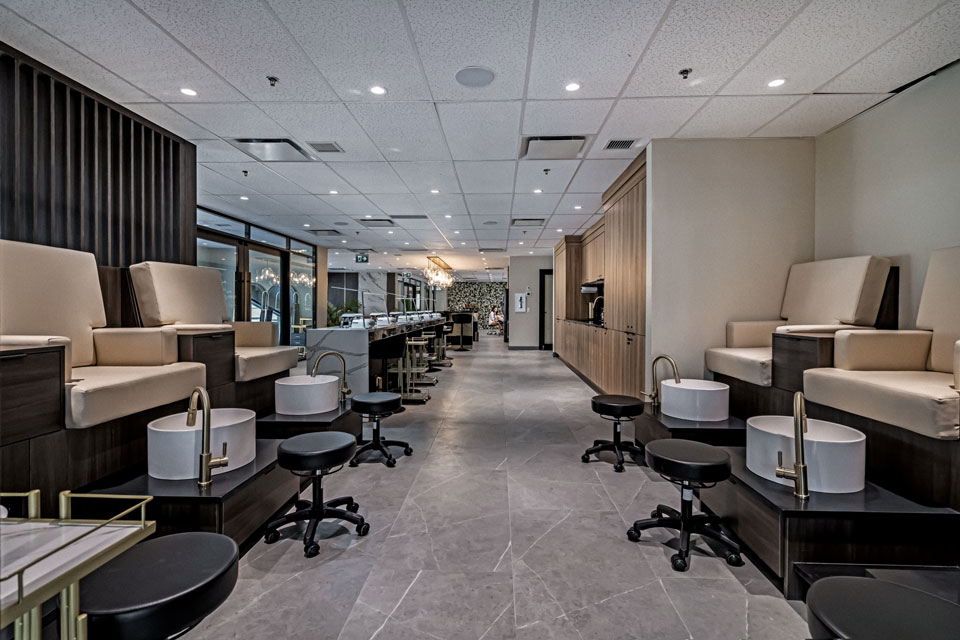 After a busy day, relax in our luxurious lounge, your oasis in Calgary. Enjoy state-of-the-art espresso machines, a curated cocktail list, and exclusive bottle service, perfect for special moments or a casual Tuesday night catch-up with friends. Our space is designed to make owning and operating your beauty business in Calgary a dream.